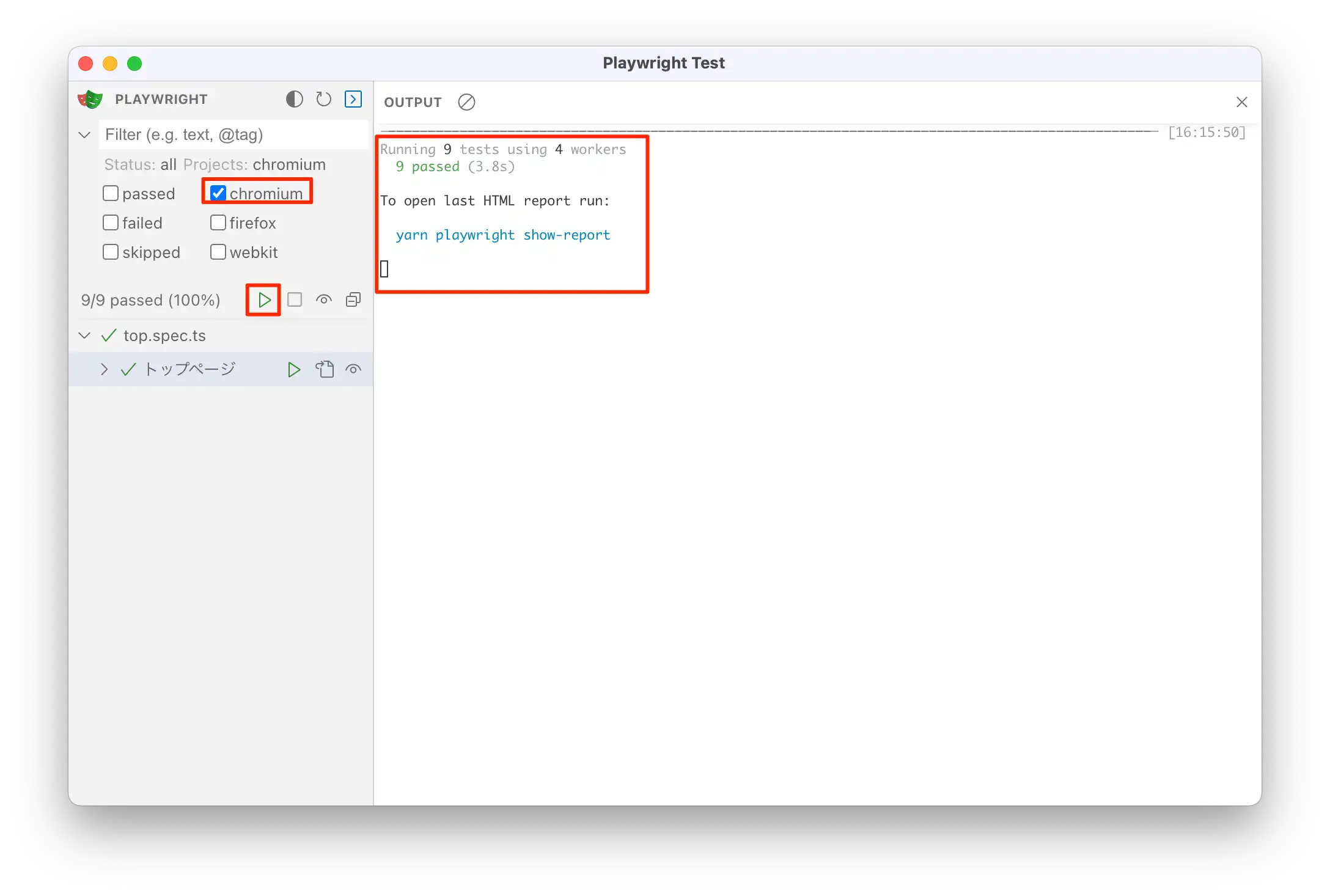 ちなみに実行ブラウザは Chrome だけで良い、って場合は --project=chromium オプションをつければOKです。